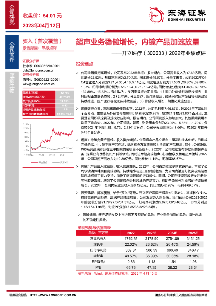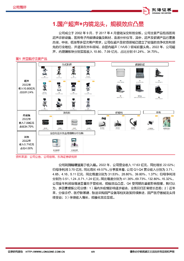 东海证券:开立医疗(300633)-2022年业绩点评:超声业务稳健增长,内镜产品加速放量.pdf