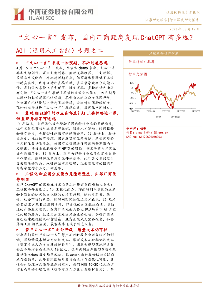华西证券:AGI(通用人工智能)专题之二:“文心一言”发布,国内厂商距离复现ChatGPT有多远?.pdf