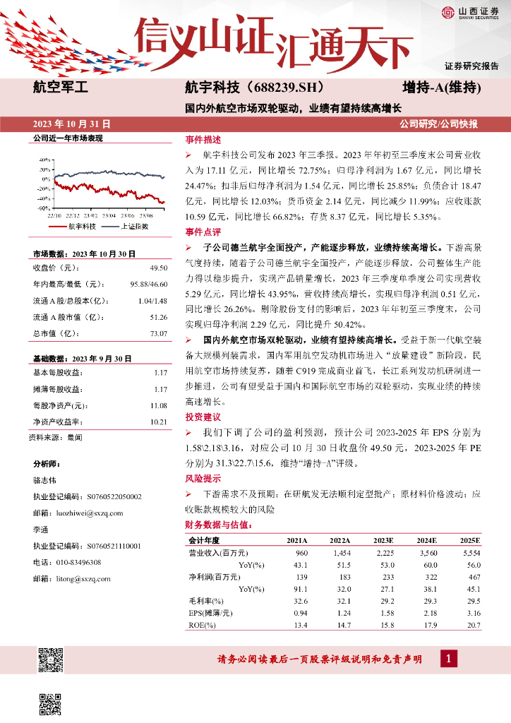 山西证券:航宇科技(688239)-国内外航空市场双轮驱动,业绩有望持续高增长.pdf