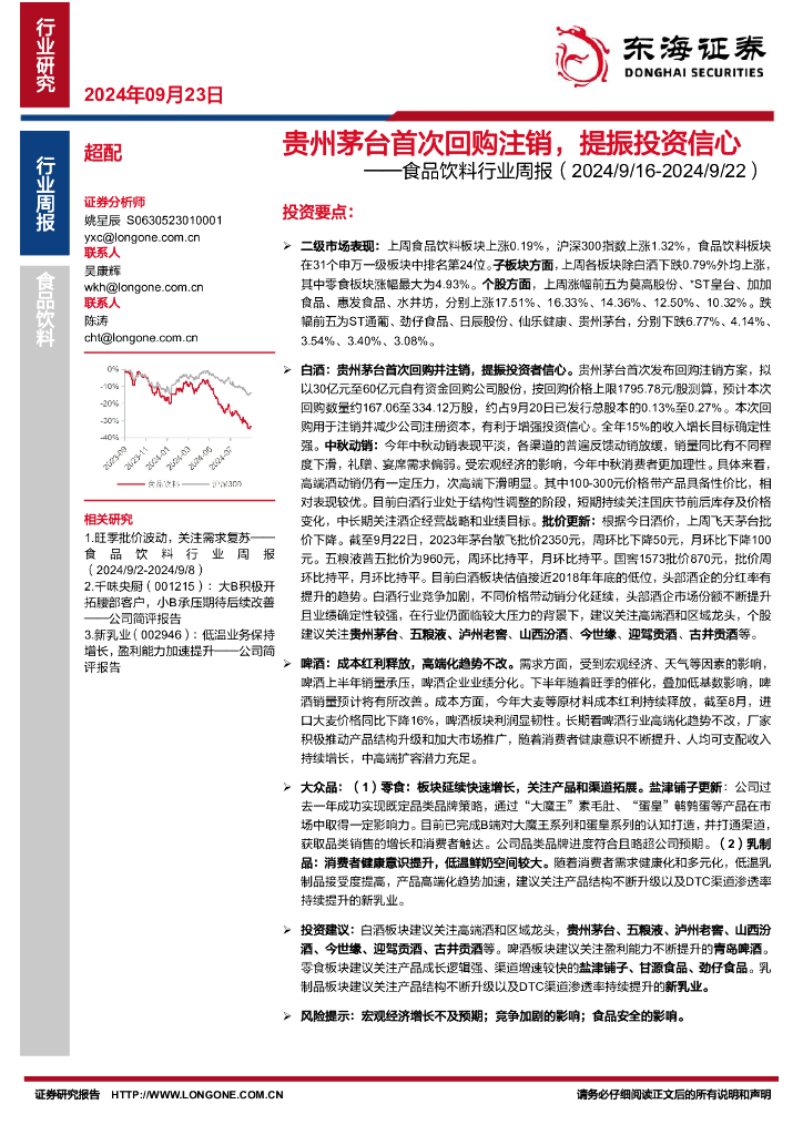 东海证券:食品饮料行业周报:贵州茅台首次回购注销,提振投资信心.pdf
