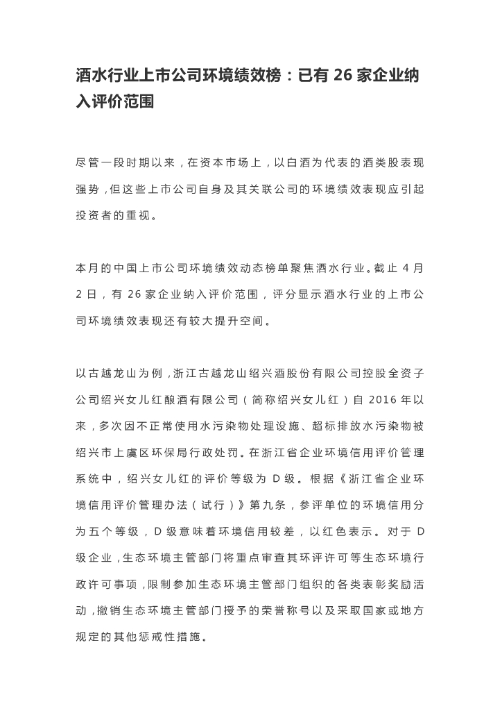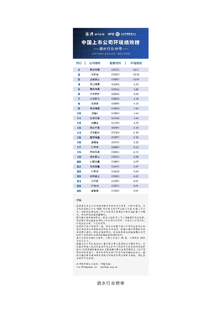 IPE公众环境研究中心:酒水行业上市公司环境绩效榜:已有26家企业纳入评价范围.pdf
