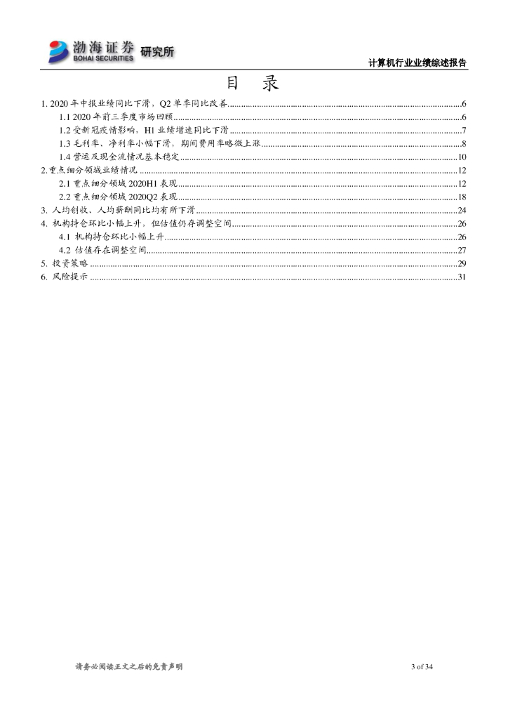 渤海证券:计算机行业2020年中报业绩综述:2020H1业绩同比下滑,Q2明显改善.pdf