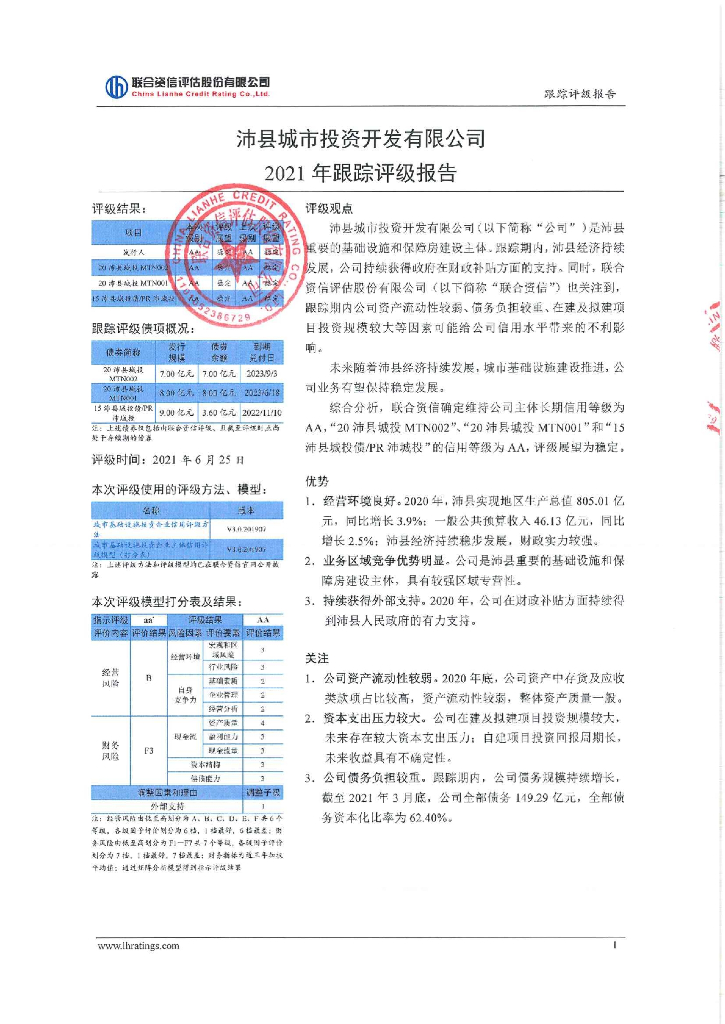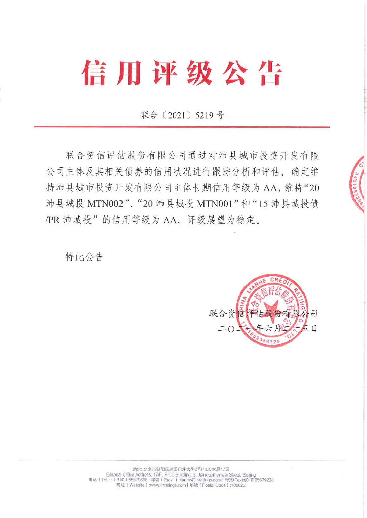 联合资信:沛县城市投资开发有限公司主体信用评级报告及跟踪评级安排.pdf