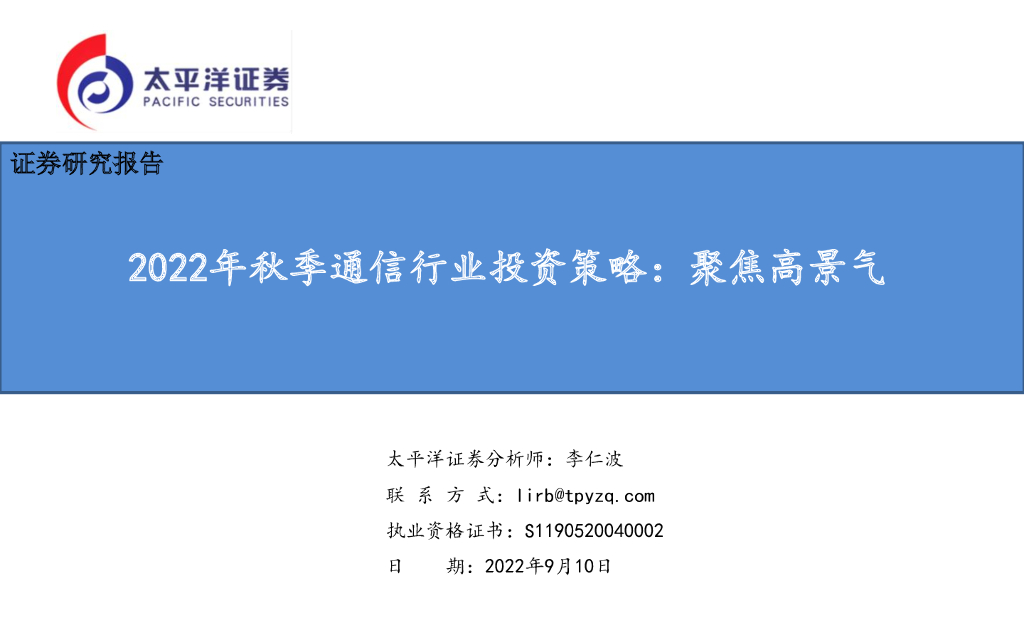 太平洋证券:2022年秋季通信行业投资策略:聚焦高景气.pdf