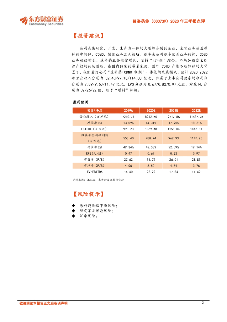 东方财富证券:普洛药业(000739)-2020年三季报点评:高增长如期兑现,内生增长稳健.pdf