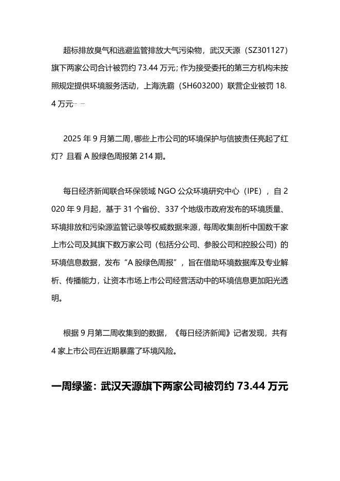 A股绿色周报(2025年第214期):4家上市公司暴露环境风险 武汉天源旗下两家公司先后被罚.pdf