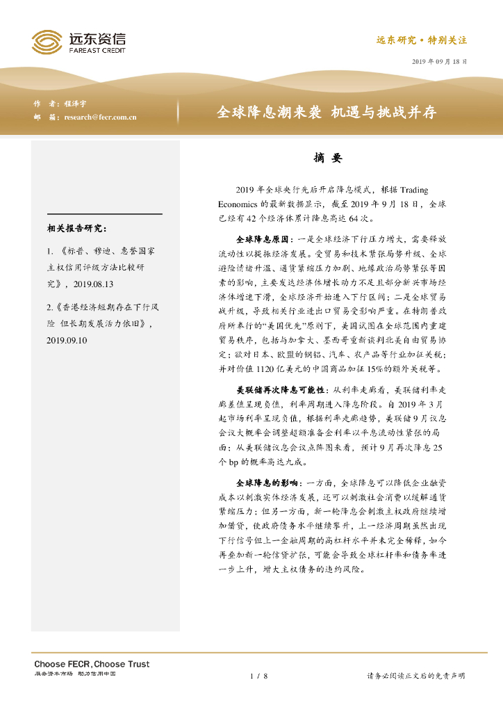 远东资信:全球降息潮来袭 机遇与挑战并存.pdf