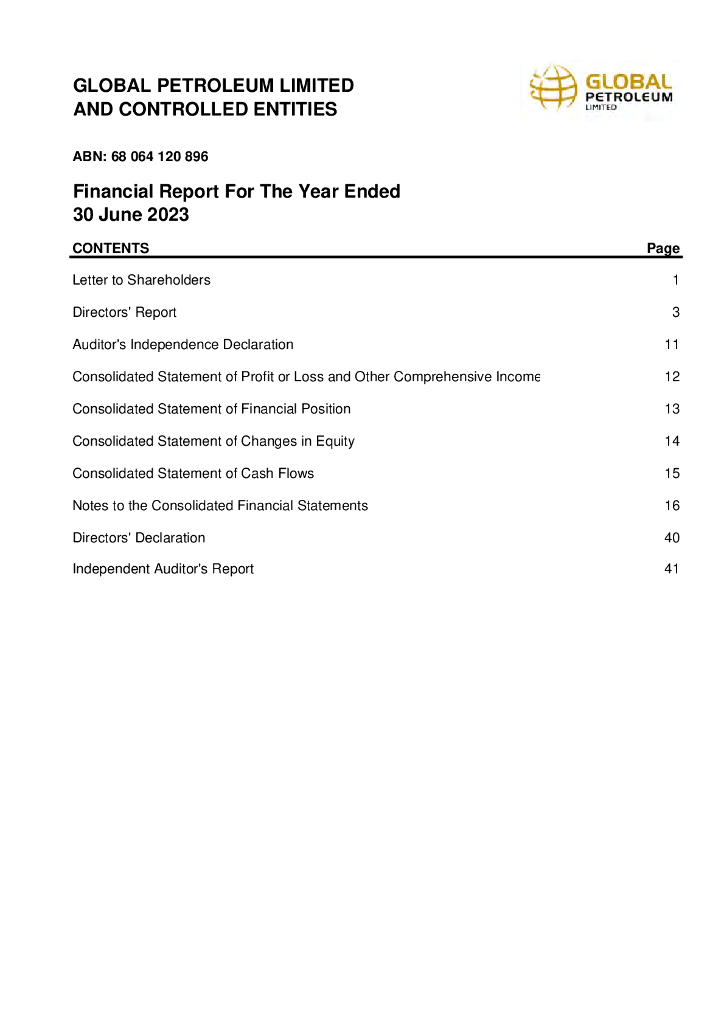 Global Petroleum Limited(GBP)2023财年年度报告(英文版).pdf