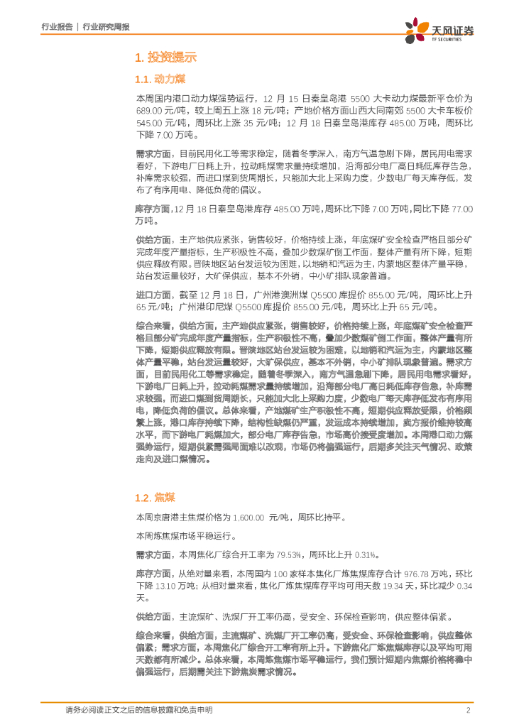 天风证券:煤炭开采一周煤炭动向:秦皇岛港库存持续低位,看好短期煤价维持上行趋势.pdf