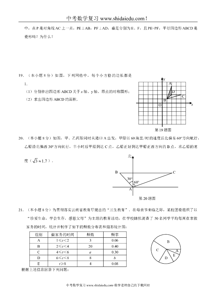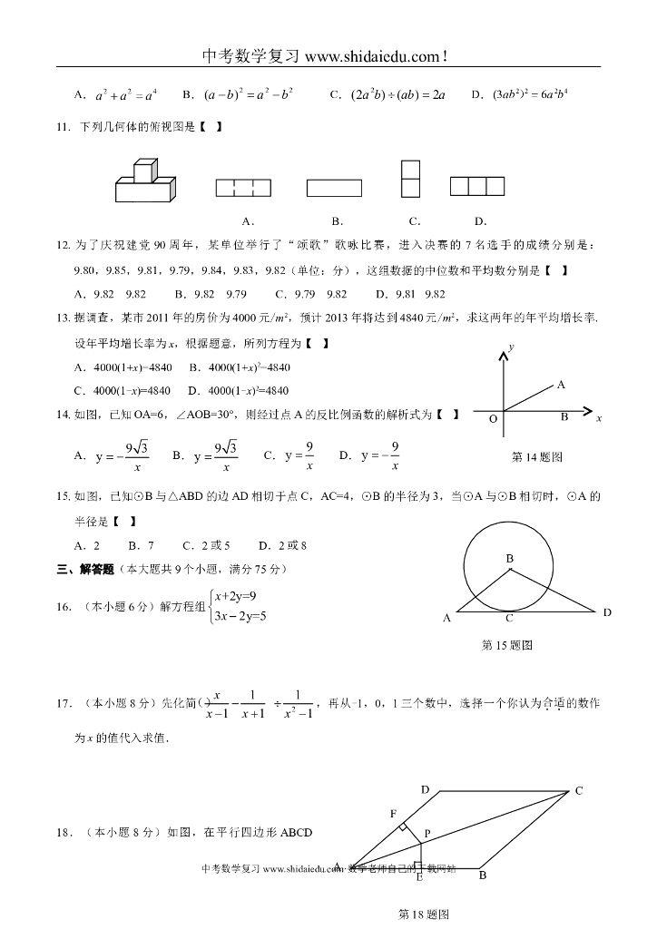 云南大理、楚雄、文山、保山、丽江、怒江、临沧中考数学试题(无答案).doc