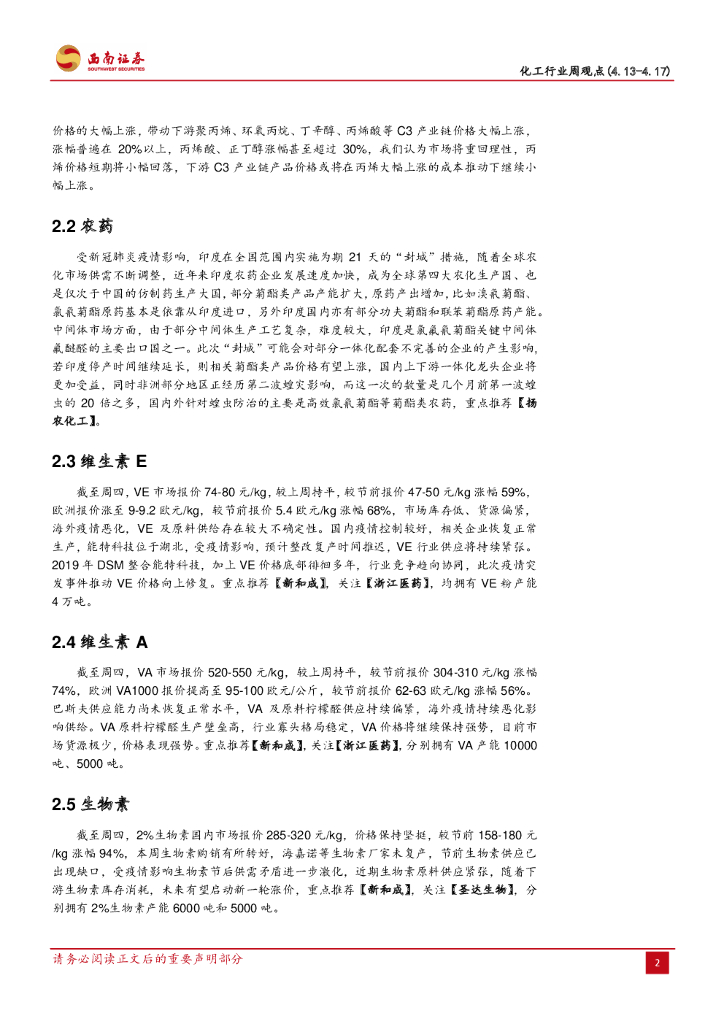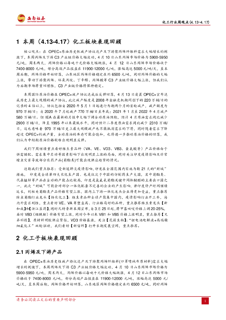 西南证券:化工行业周观点:丙烯带动C3产业链价格暴涨,OPEC+历史性原油减产协议达成.pdf