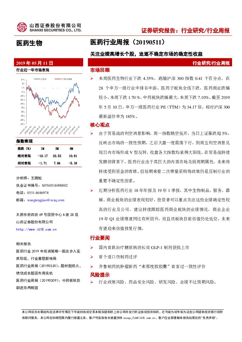 山西证券:医药行业周报:关注业绩高增长个股,追逐不确定市场的确定性收益.pdf