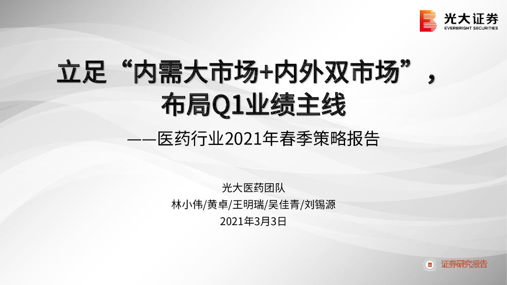 光大证券:医药行业2021年春季策略报告:立足“内需大市场+内外双市场”,布局Q1业绩主线.pdf