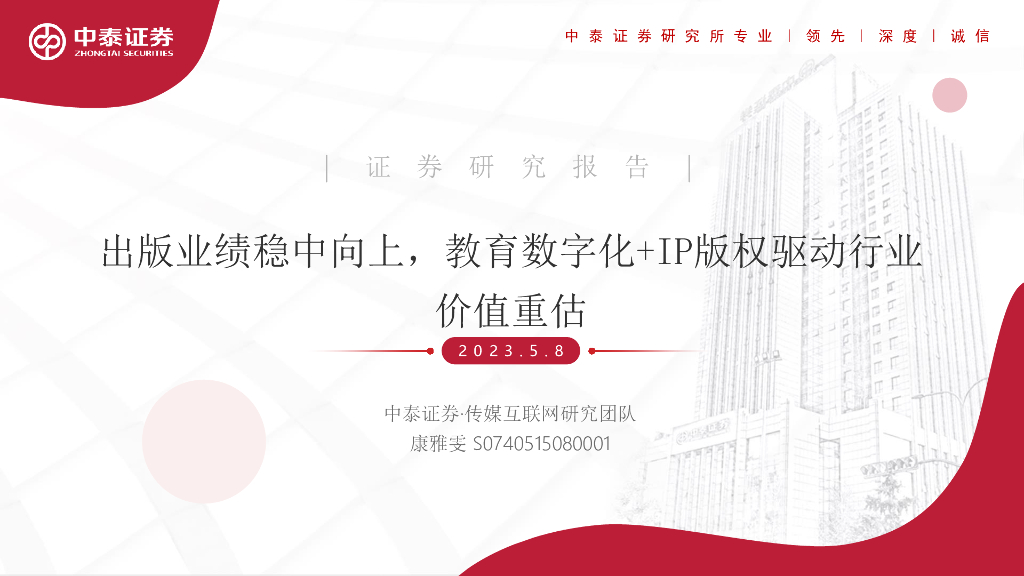 中泰证券:传媒互联网:出版业绩稳中向上,教育数字化+IP版权驱动行业价值重估.pdf