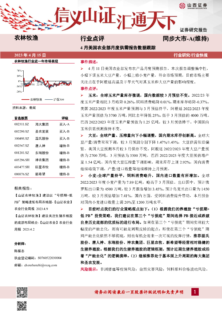 山西证券:农林牧渔:4月美国农业部月度供需报告数据跟踪.pdf