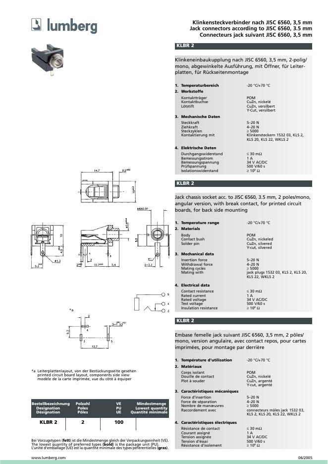 LUMBERG Klinkensteckverbinder nach JISC 6560, 3,5 mm Jack connectors according to JISC 6560, 3.5 mm Connecteurs jack suivant JISC 6560, 3,5 mm 数据手册(2).pdf