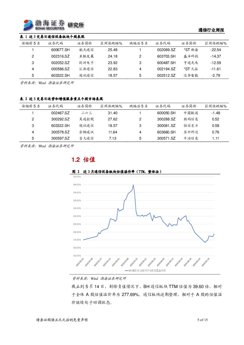 渤海证券:通信行业周报:5G带动通信板块反弹,关注指数调整品种.pdf