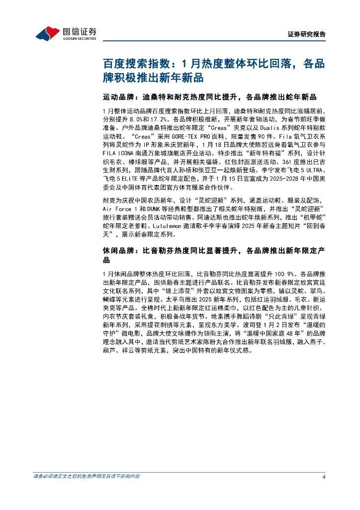 国信证券:纺织服装品牌力跟踪月报202501期:各品牌积极推出新年新品,识货平台销量环比提升.pdf