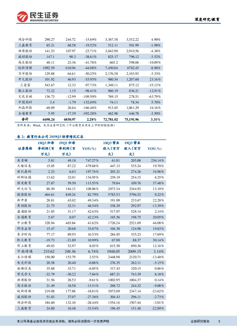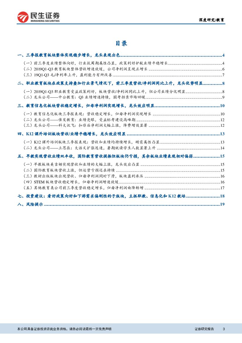 民生证券:教育行业2019年前三季度财报综述:教育板块业绩整体向好,行业抗周期属性凸显.pdf