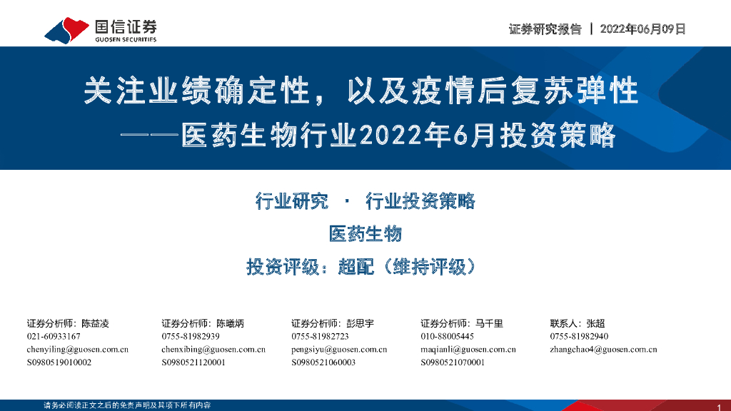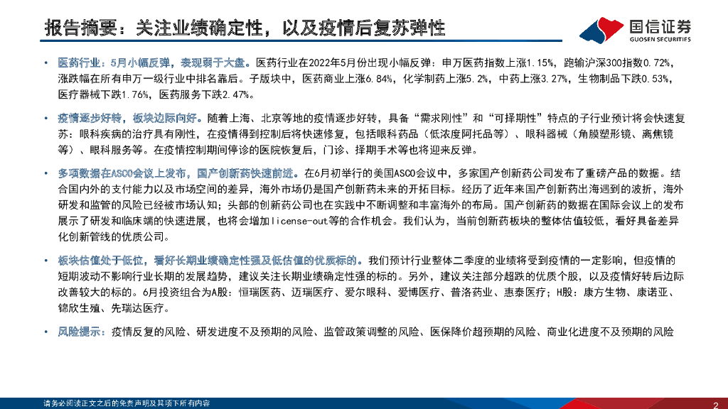 国信证券:医药生物行业2022年6月投资策略:关注业绩确定性,以及疫情后复苏弹性.pdf
