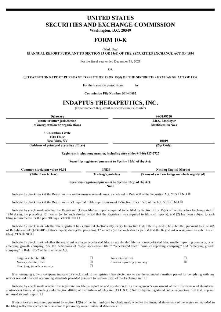Indaptus Therapeutics, Inc.(INDP)2023财年年度报告(英文版).pdf
