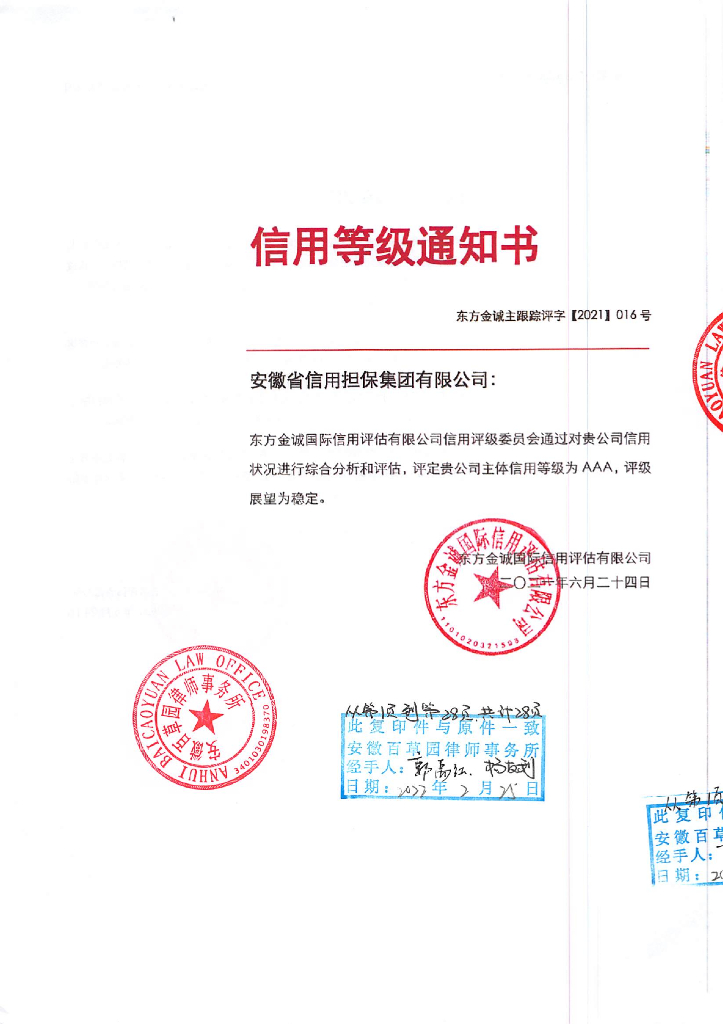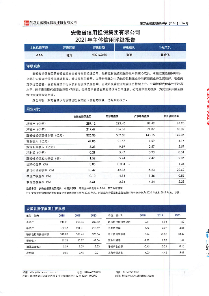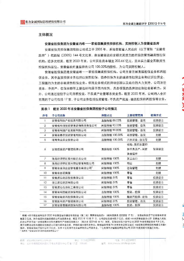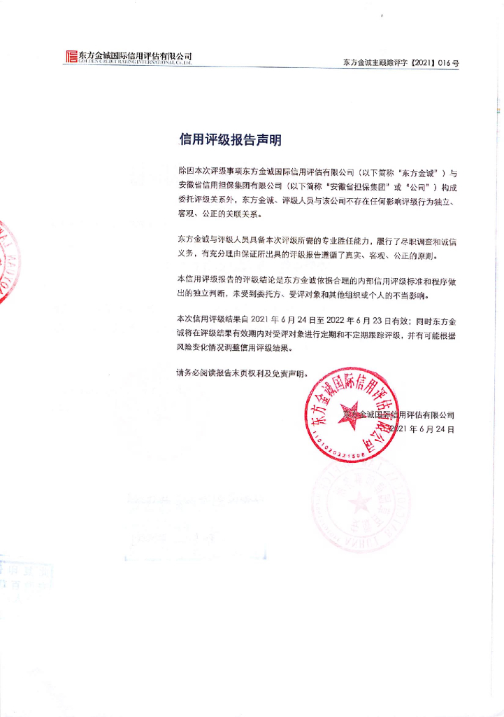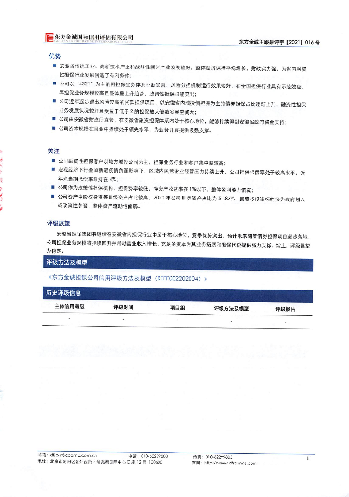 东方金诚:安徽省信用融资担保集团有限公司2021年主体信用评级报告.pdf