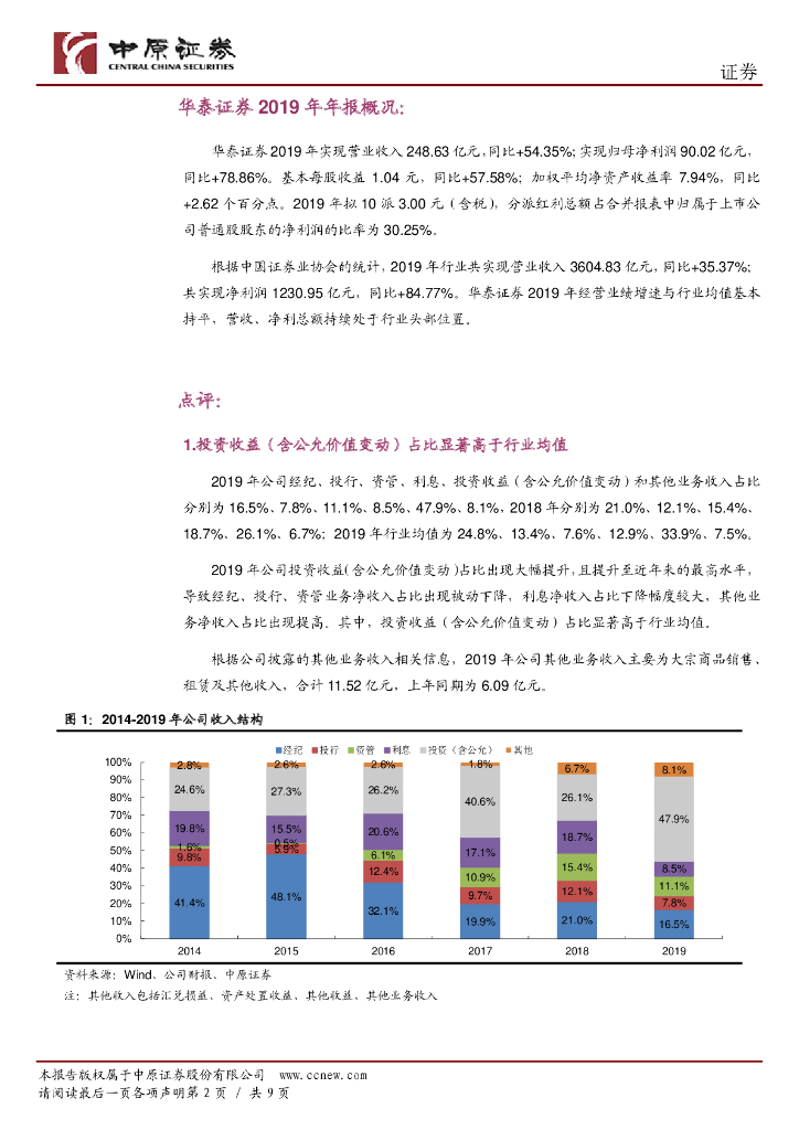中原证券:华泰证券(601688)-2019年年报点评:投资收益大增、市场地位稳固.pdf