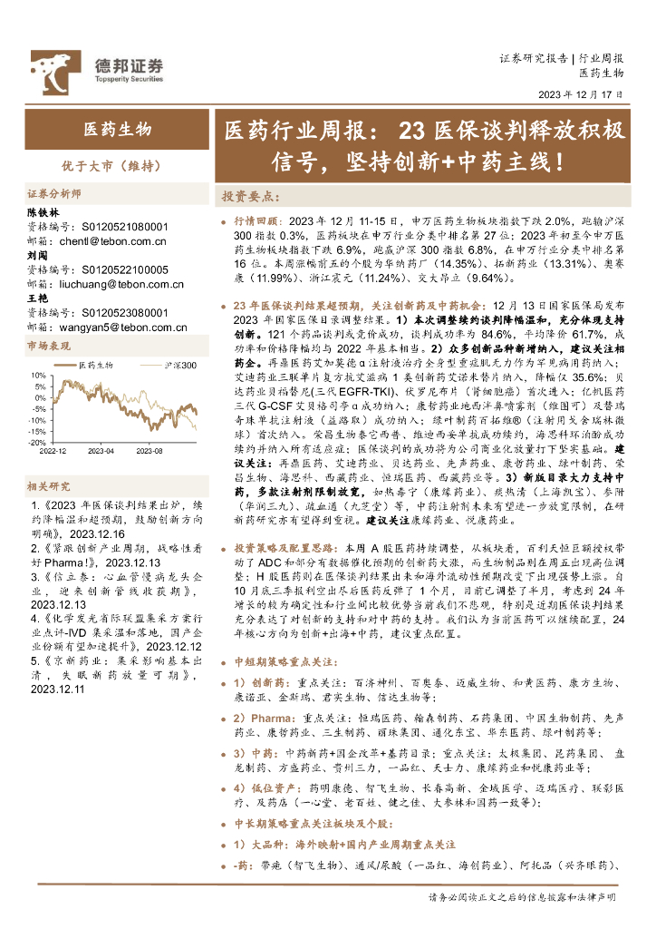 德邦证券:医药行业周报:23医保谈判释放积极信号,坚持创新+中药主线!.pdf