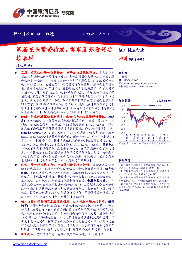 中国银河:轻工制造行业月报:家居龙头蓄势待发,需求复苏看好后续表现.pdf
