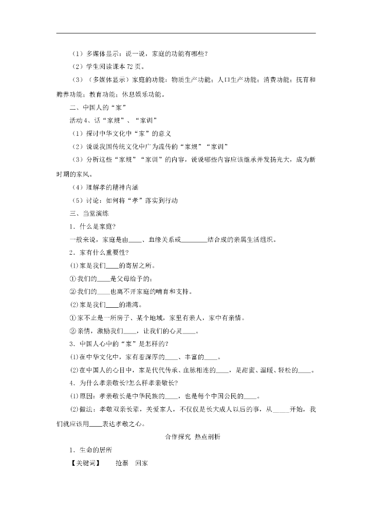 七年级上册 初中道德与法治7.1《家的意味》教学设计1.doc