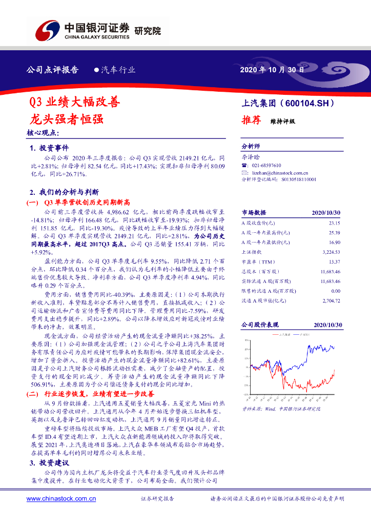 中国银河:上汽集团(600104)-Q3业绩大幅改善 龙头强者恒强.pdf
