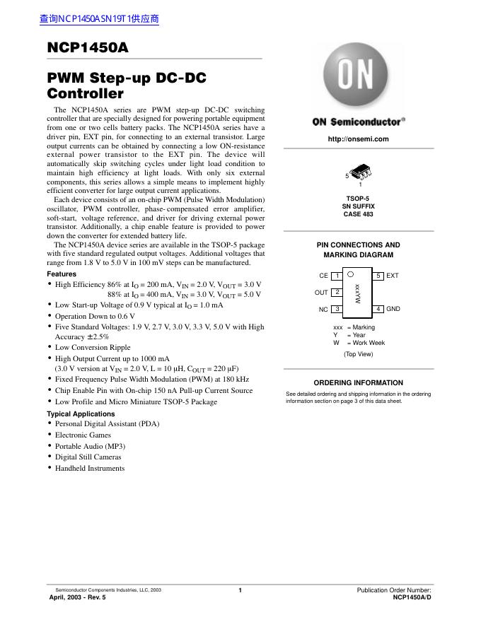 ON Semiconductor NCP1450A 数据手册.pdf