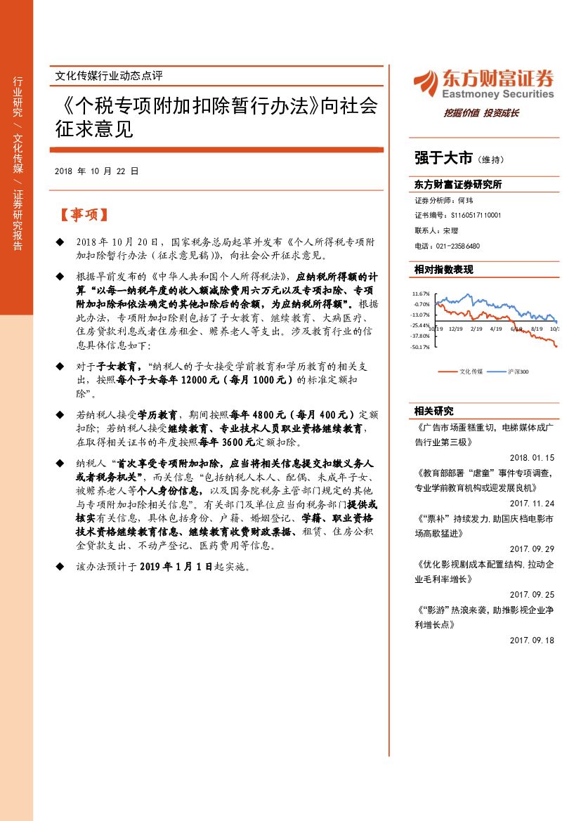 东方财富证券:文化传媒行业动态点评:《个税专项附加扣除暂行办法》向社会征求意见.pdf