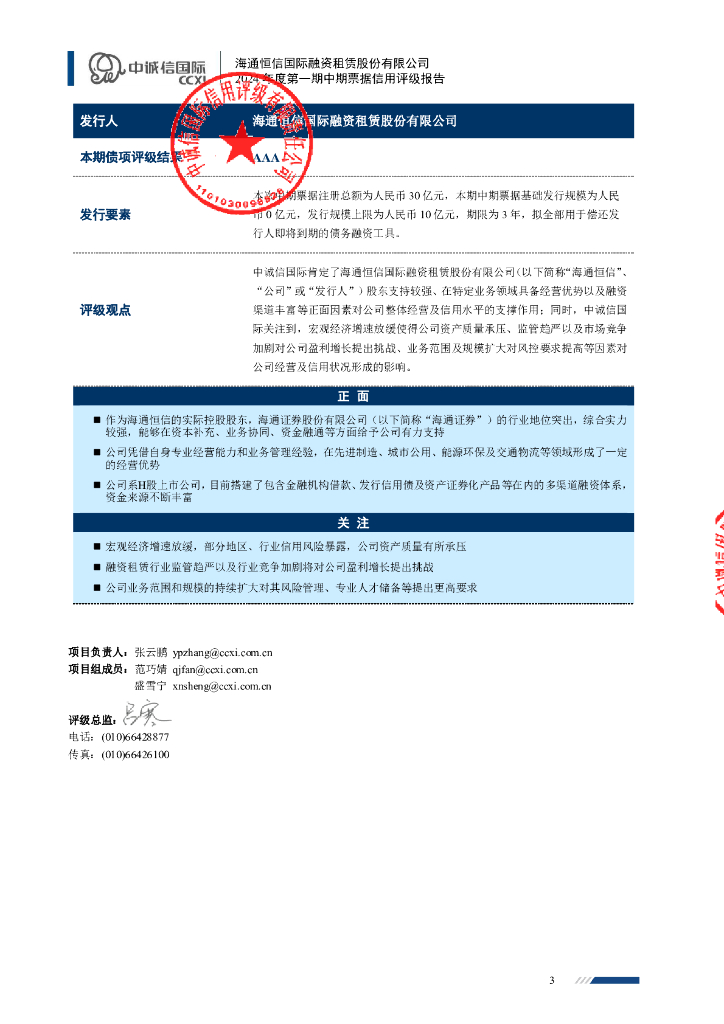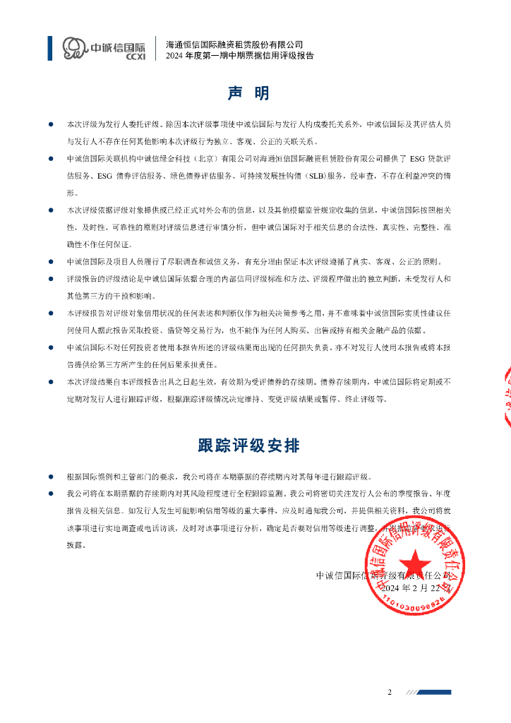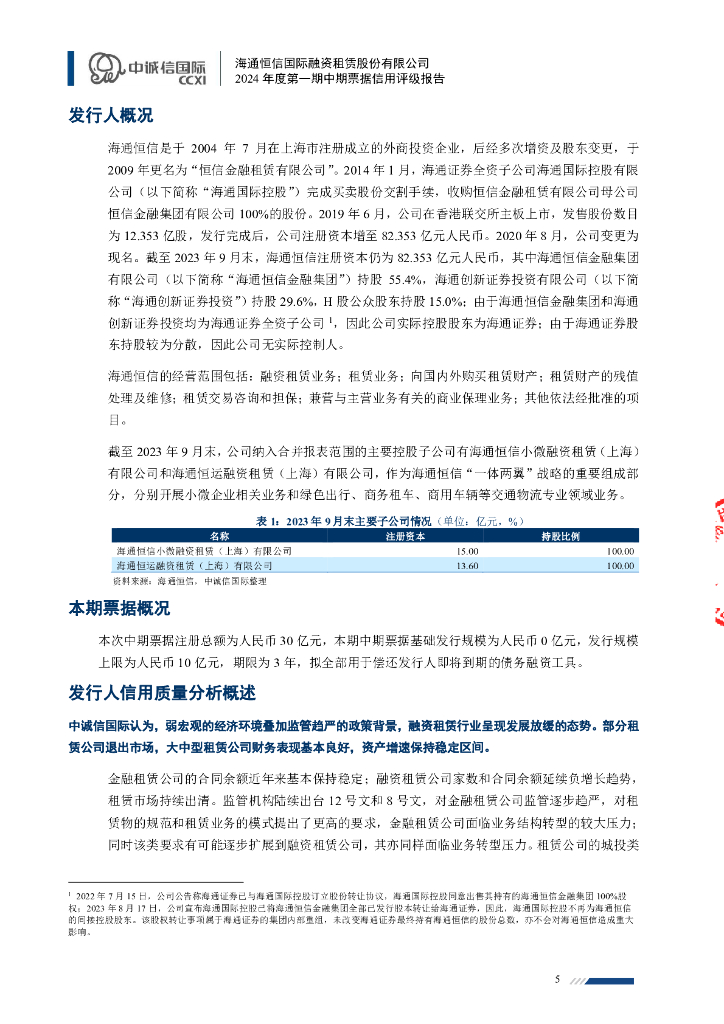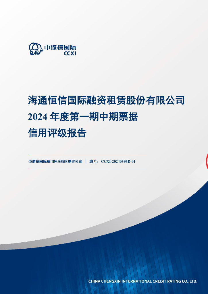 中诚信:海通恒信国际融资租赁股份有限公司2024年度第一期中期票据信用评级报告.pdf