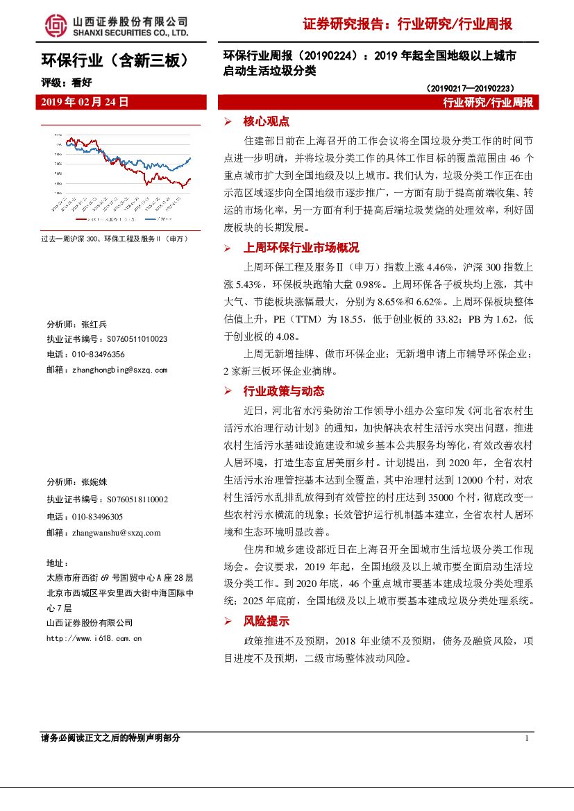 山西证券:环保行业周报:2019年起全国地级以上城市启动生活垃圾分类.pdf