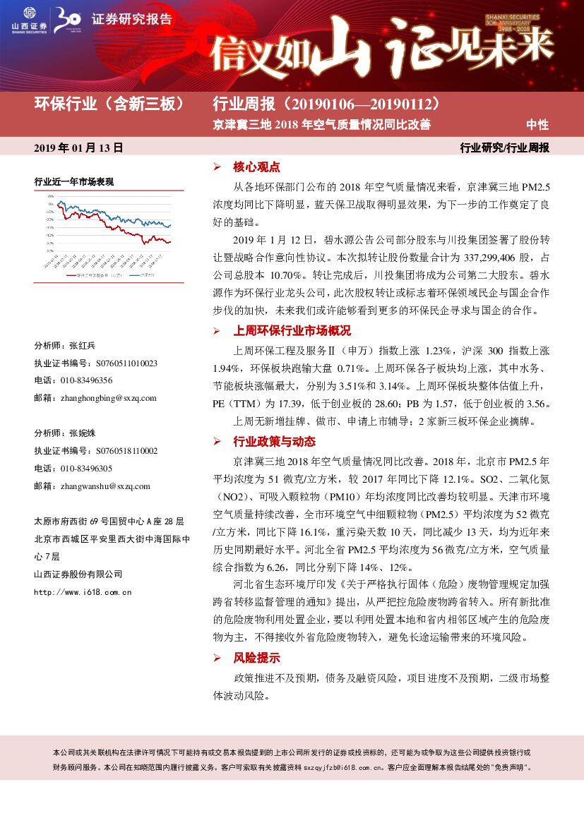 山西证券:环保行业(含新三板)周报:京津冀三地2018年空气质量情况同比改善.pdf