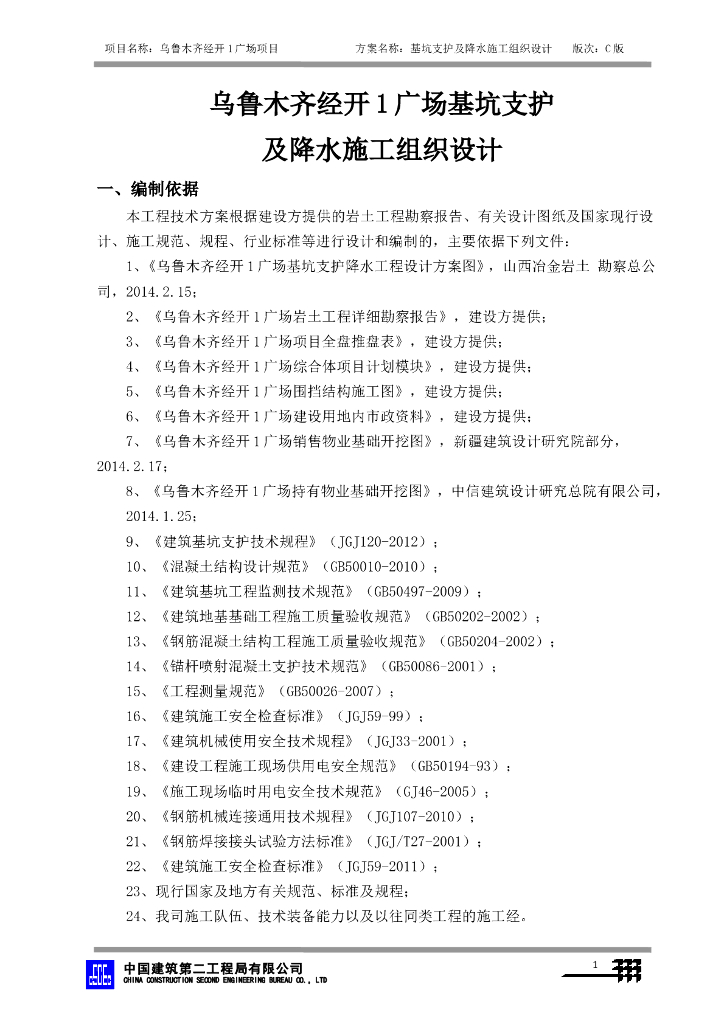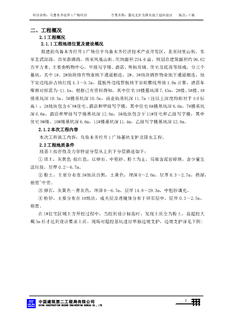 新疆广场项目基坑支护及降水施工组织设计.doc