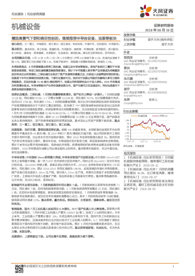 天风证券:机械设备行业研究周报:精选高景气下游和确定性标的,继续推荐半导体设备、油服等板块.pdf