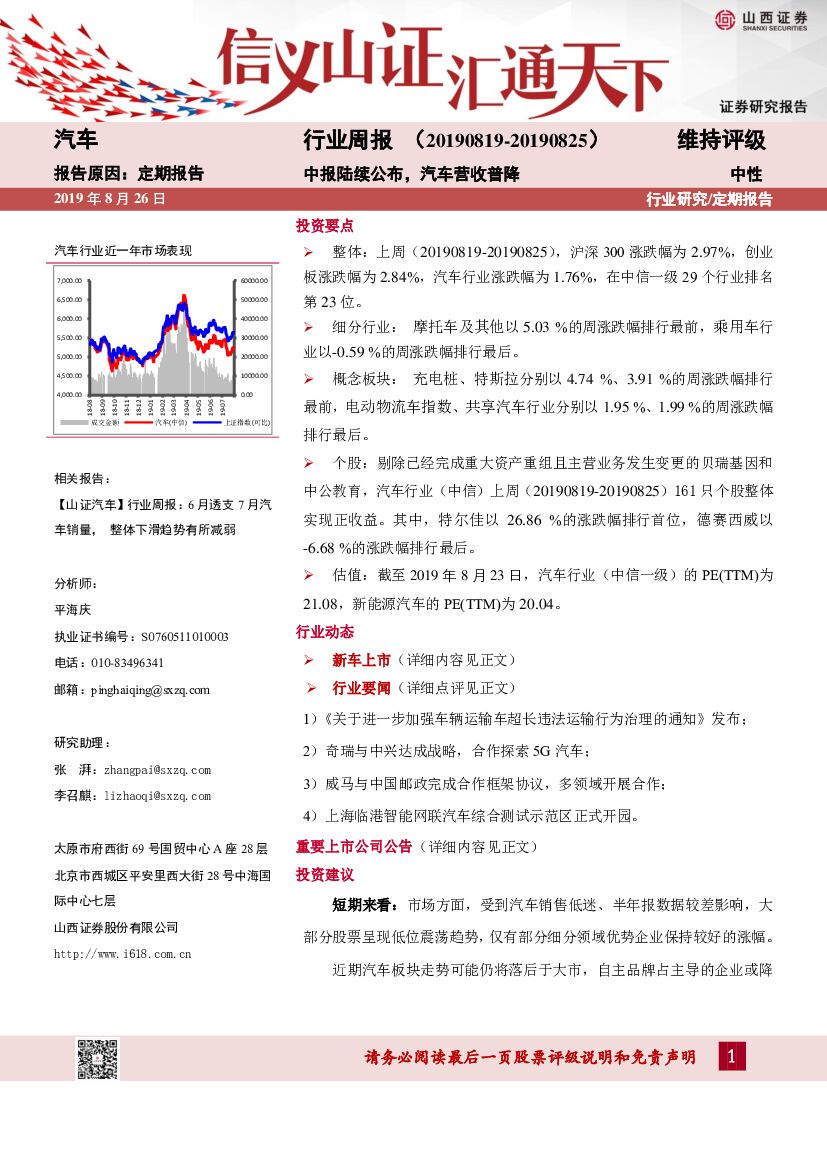 山西证券:汽车行业周报:中报陆续公布,汽车营收普降.pdf