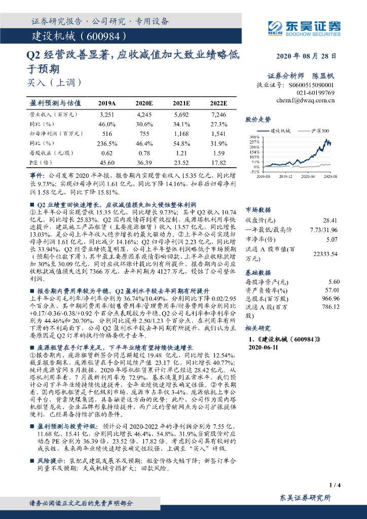 东吴证券:建设机械(600984)-Q2经营改善显著,应收减值加大致业绩略低于预期.pdf