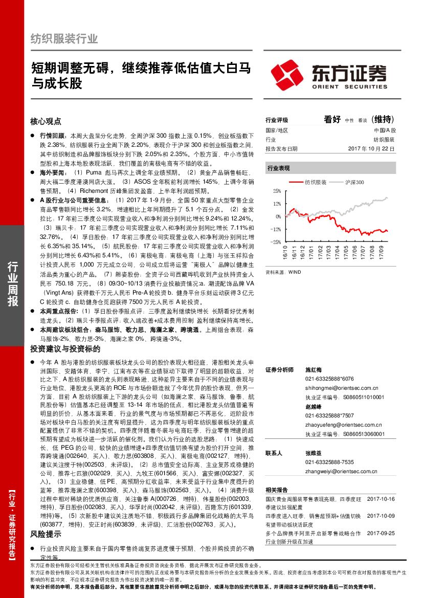东方证券:纺织服装行业:短期调整无碍,继续推荐低估值大白马与成长股.pdf