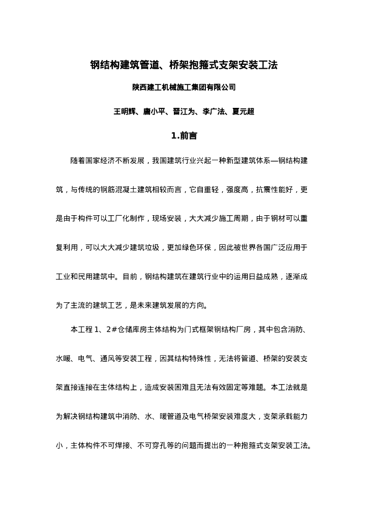 QHGF-2022028 钢结构建筑管道、桥架抱箍支架安装工法.doc