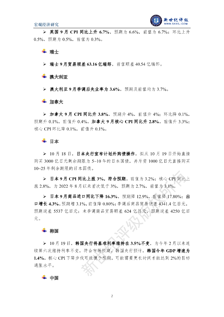 新世纪资信:巴以冲突或加剧全球通胀 中国前三季度经济增长良好——全球宏观经济周报(2023/10/14-10/20).pdf