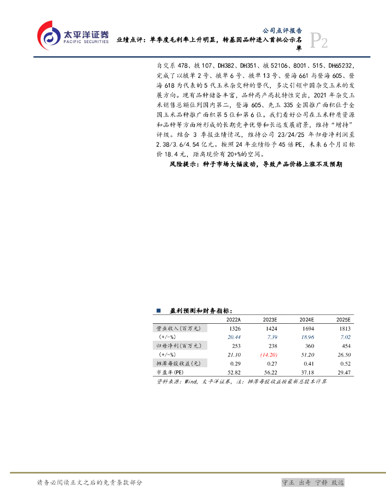 太平洋证券:登海种业(002041)-业绩点评:单季度毛利率上升明显,转基因品种进入首批公示名单.pdf