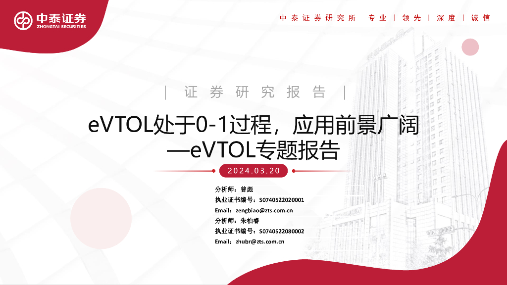中泰证券:eVTOL专题报告:eVTOL处于0-1过程,应用前景广阔.pdf
