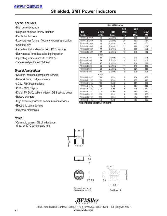JWMiller Shielded, SMT Power Inductors 数据手册.pdf