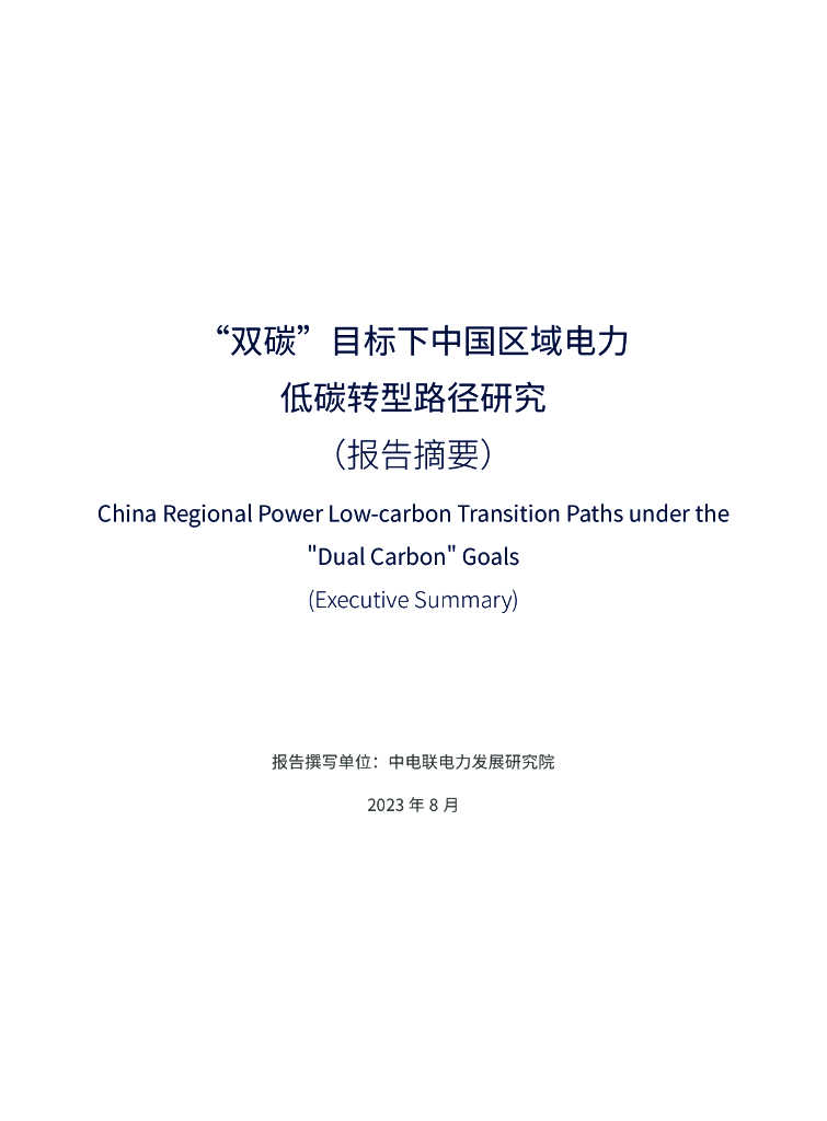 中电联电力发展研究院:“双碳”目标下中国区域电力低碳转型路径研究(报告摘要).pdf