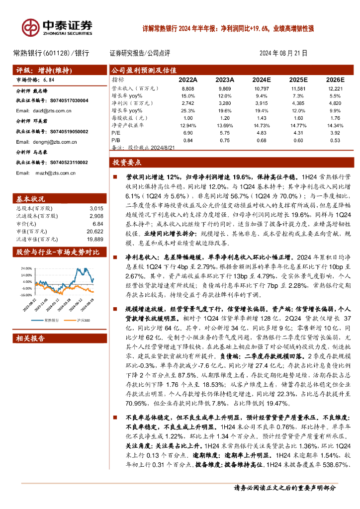 中泰证券:详解常熟银行2024年半年报:净利润同比+19.6%,业绩高增韧性强.pdf