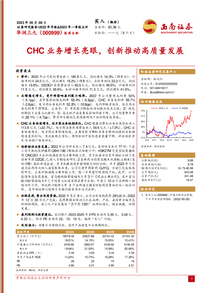 西南证券:华润三九(000999)-CHC业务增长亮眼,创新推动高质量发展.pdf