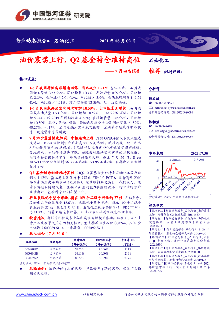 中国银河:石油化工7月动态报告:油价震荡上行,Q2基金持仓维持高位.pdf